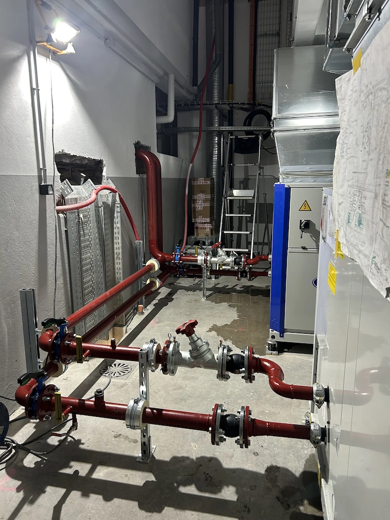 Réalisation des réseaux de froid et des locaux techniques pour le refroidissement des serveurs du métro, ainsi que des réseaux RIA (réseau incendie) en acier galvanisé soudé.